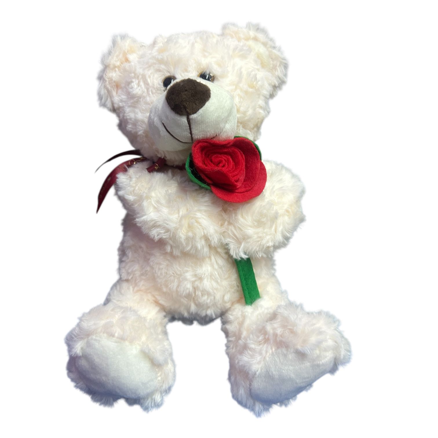 Oso tochomorocho color blanco con flor roja 22cm de alto