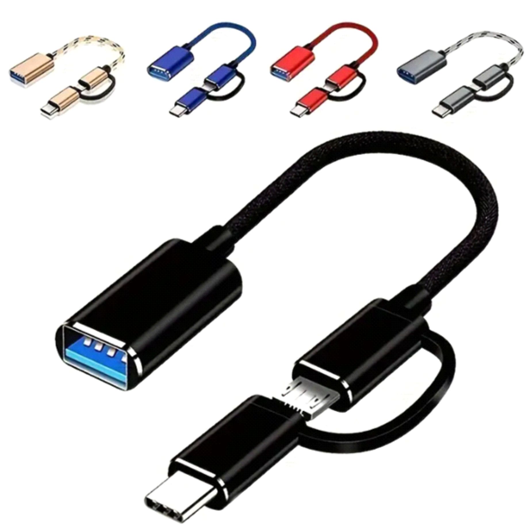 Cable OTG Type-C 2-en-1, Multicolor, Transferencia de Datos y Carga